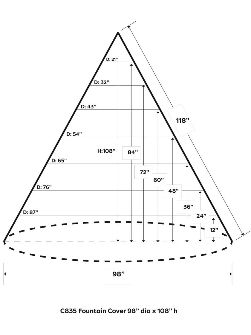 Shaped like a cone to cover and protect Garden Sculptures, Fountains, and Statues from frost and dirt. These covers are made of woven polyester fabric from dyed thread, instead of the more commonly used coated thread, to keep your cover fade resistant. Now treated with an environmentally friendly non-PVC coating on the underside of the cover to keep the fabric weatherproof and water-resistant. Seam construction has also been improved with higher quality thread and tighter stitching density; upper seams are double sewn with waterproof tape. Treated with BOSTECH™ surface treatment; a unique formula that repels water on the cover surface and also includes a UV inhibitor for long-lasting durability. Has solid brass eyelets and durable tie and cord locks for fastening and keeping the cover secure in windy conditions. Resistant to mold, mildew, and rot. Won’t crack in the winter and resistant to high temperatures in the summer. Bosmere has been making quality outdoor furniture covers since 1979.