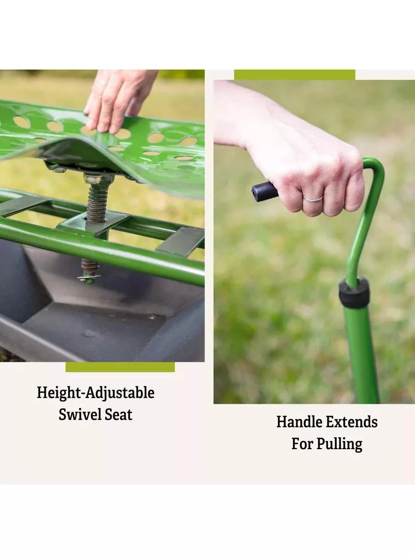 It’s the original — and still the best tractor scoot on the market! Our versatile, steerable scoot is stronger, lasts longer and has more features than competitors’ models — all at a value price. This go-anywhere, do-anything, super-stable rolling scoot lets you work from a comfortable seated position and is perfect for gardening, washing tires, painting baseboards and more. Super-sturdy; holds up to 400 lbs. Bucket Basket holds a 3-1/2 gal. Tubtrug or 5-gal. pail and carries up to 40 lbs.; perfect for tossing weeds or gathering the harvest. Handle extends for pulling, retracts & locks for support. Storage tray holds hand tools and supplies.