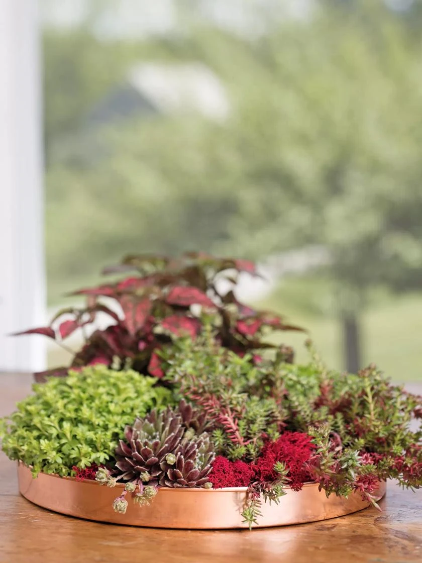 - Handsome copper tray dresses up potted plants and protects surfaces