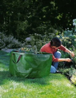 They won’t flop over like flimsy plastic leaf bags, and they won’t let garden refuse spill out like wheelbarrows can. These tear-proof polypropylene garden bags have a wide base and plastic hoop rim, so they stand at attention, ready to fill with leaves, weeds or grass clippings.